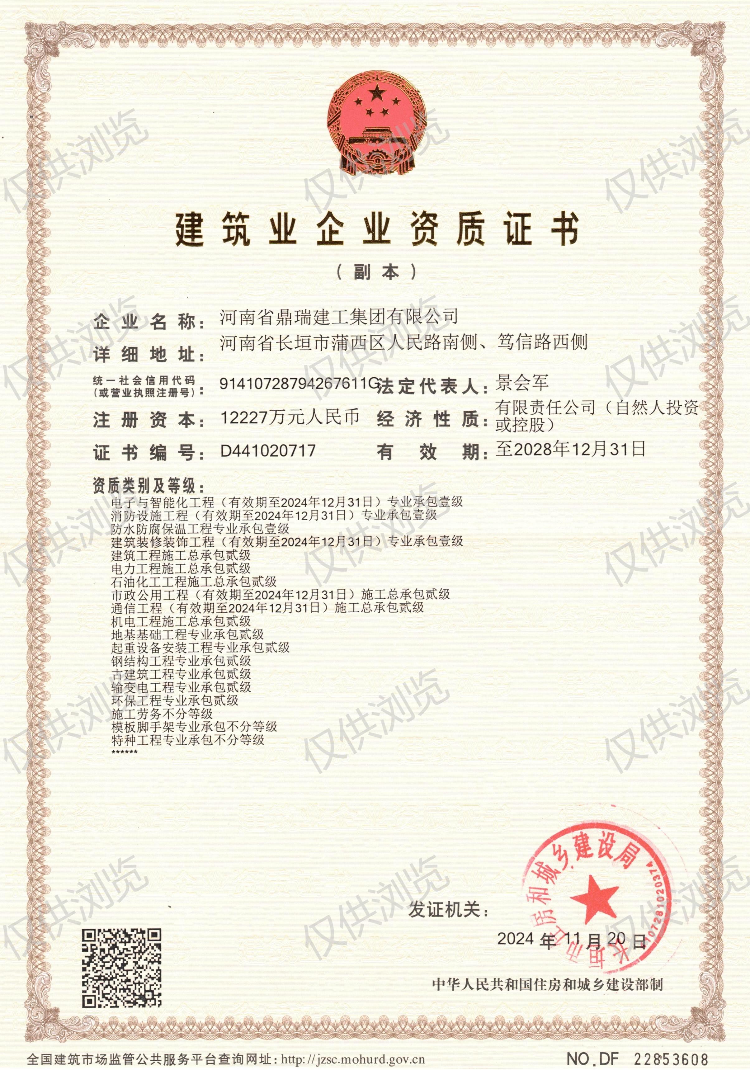 河南省鼎瑞建工集團有限公司前身是河南省鼎瑞建設有限公司,成立于 2006 年 10 月 11 日,公司經多年的經營發展,于 2017 年 11 月 17 日以河南省鼎 瑞建設有限公司為母公司組建河南省鼎瑞建工集團有限公司。集團下設河南省鼎 瑞生態農業發展有限公司、新鄉市菩泉飲品有限公司、河南省鼎瑞建設勞務有限 公司三個子公司,集建筑施工、農業養殖、沼氣發電、原油開采、純凈水生產于 一體的......